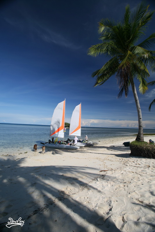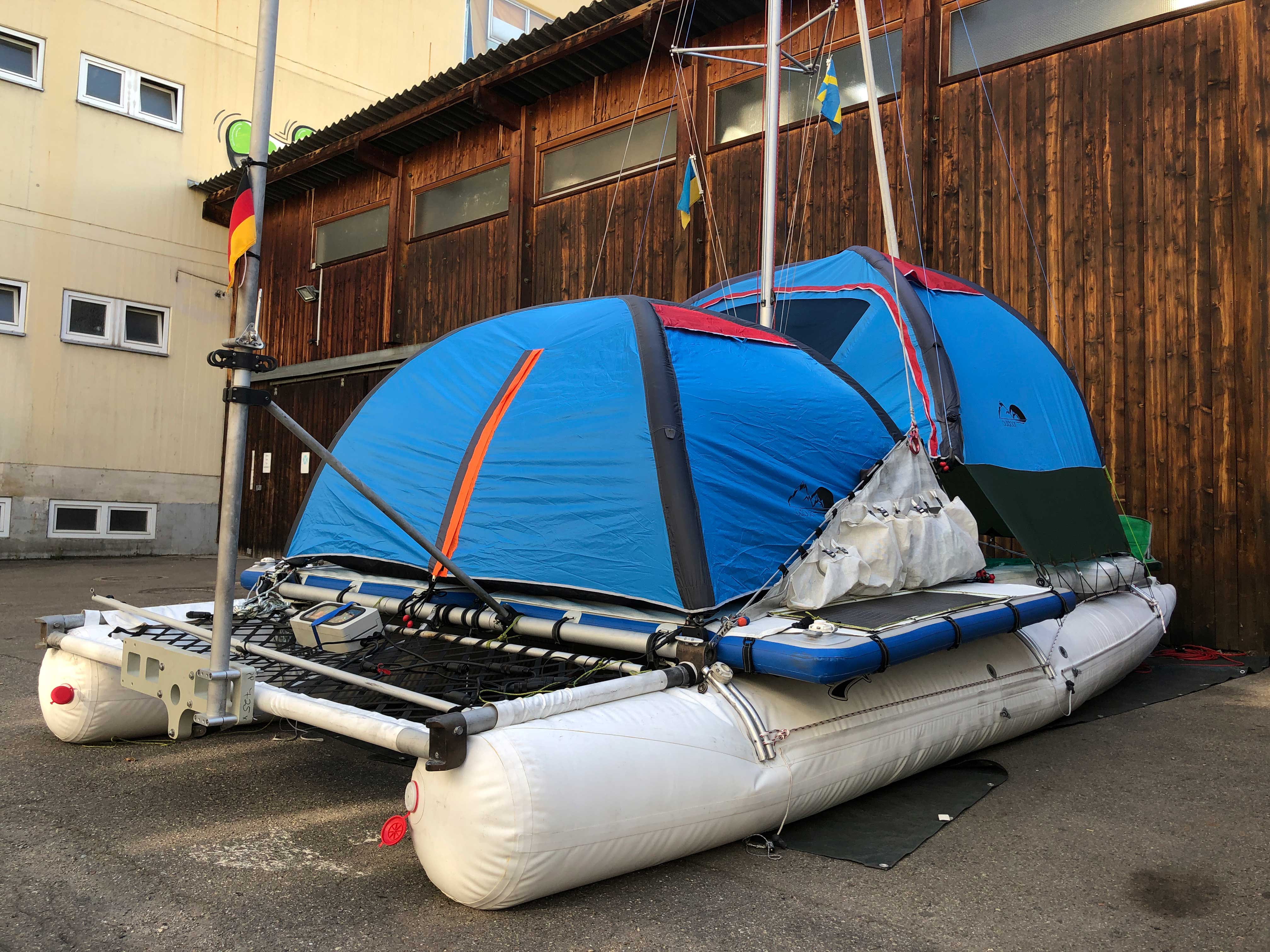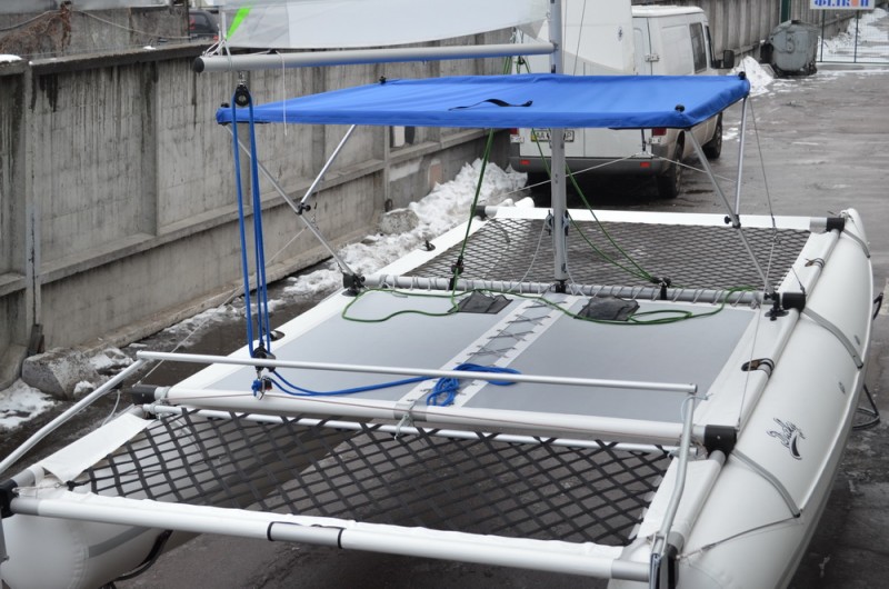 Also outboard engines with a power up to 4.0 hp can be installed on this catamaran via an additional motor bracket attached to the aft beam.