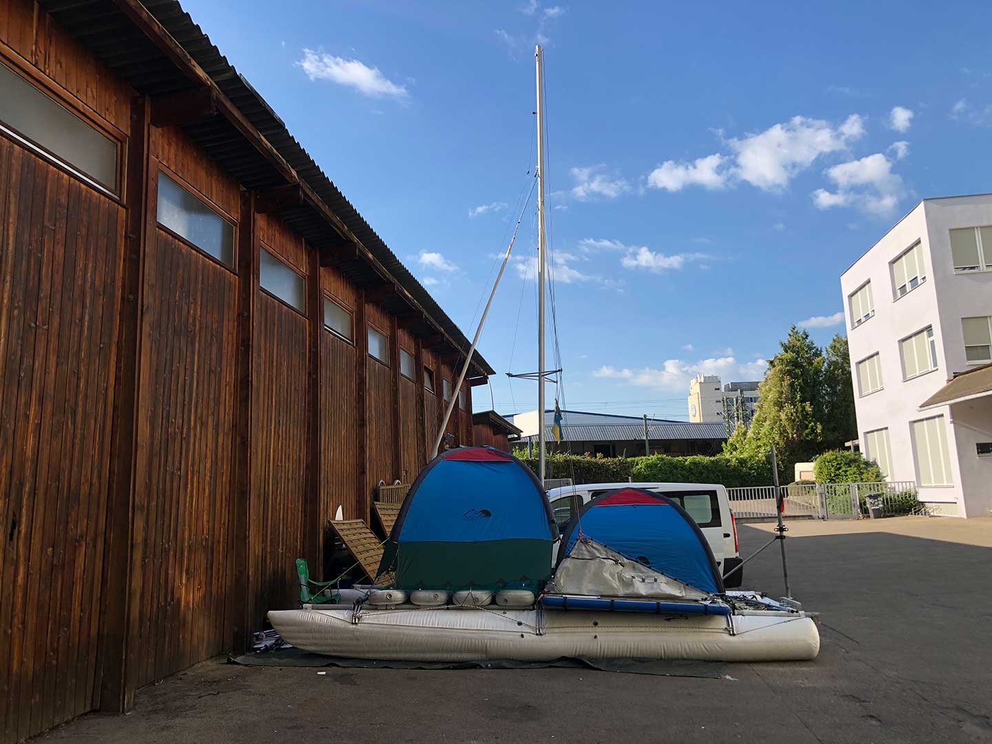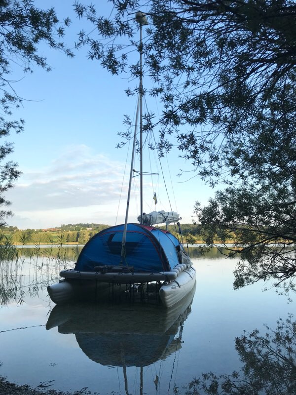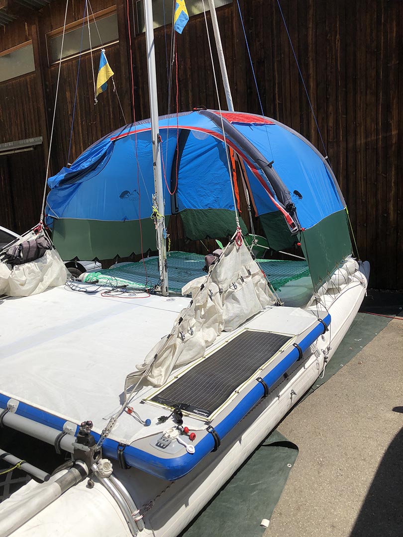 Zelt für aufblasbare segel katamarane